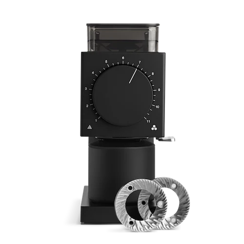 The Fellow Ode Gen 2 coffee grinder boasts powerful, professional-level capabilities in a reimagined at-home brew grinder. It features 64mm professional-grade flat burrs, 31 grind settings, and a unique single dose load bin for maximum bean freshness.